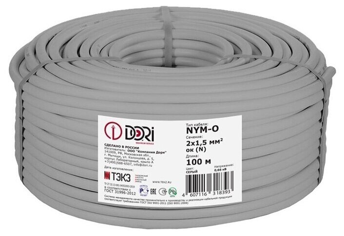 NYM 2x1.5 mm2, grey, 1 r.m. GOST 31996-2012