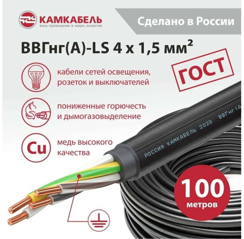 Type of cable product: cable, marking: VVGngA-LS, GOST